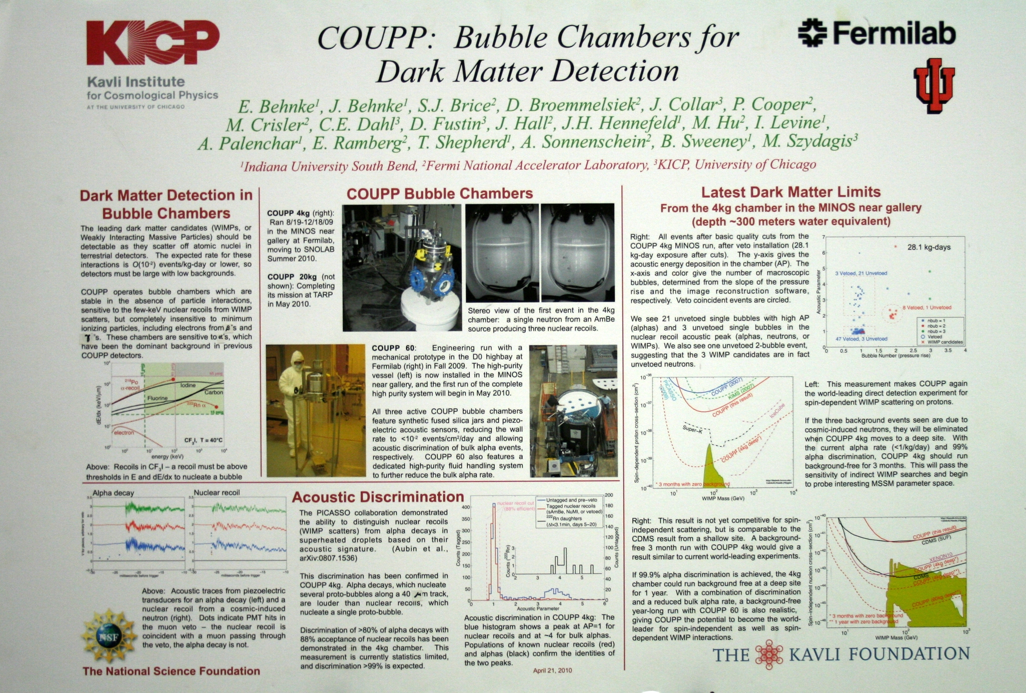2 Looking for bubbles and sound in a special container of highly purified liquid (I think it was distilled water).